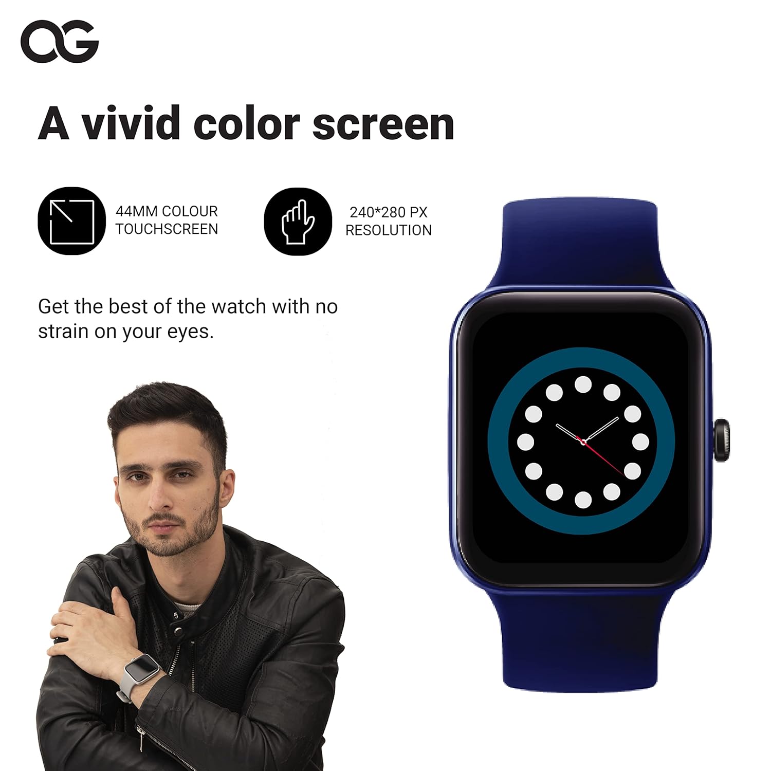 OG Armour Pro Smart Watch with Alexa Built-in, 24*7 Spo2 Monitoring, 44mm HD TruView Display, Stress, Sleep, Heart Rate (Aquamarine Blue)