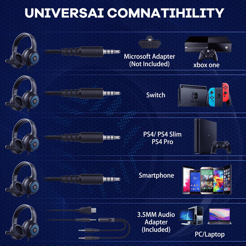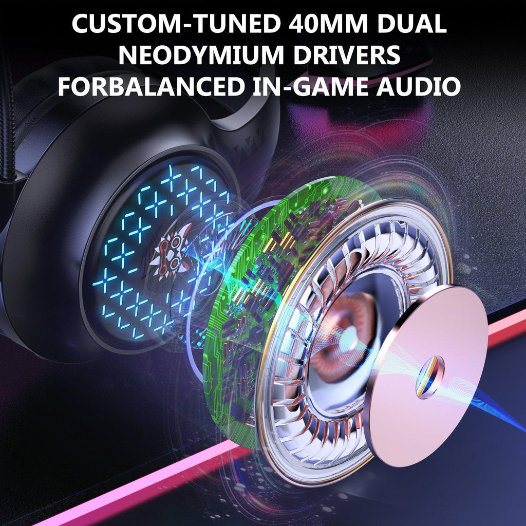 ONIKUMA X7 Breathing Gaming Headset – RGB Breathing - 6 Kinds of breathing lights, circling shining, the game is cooler.