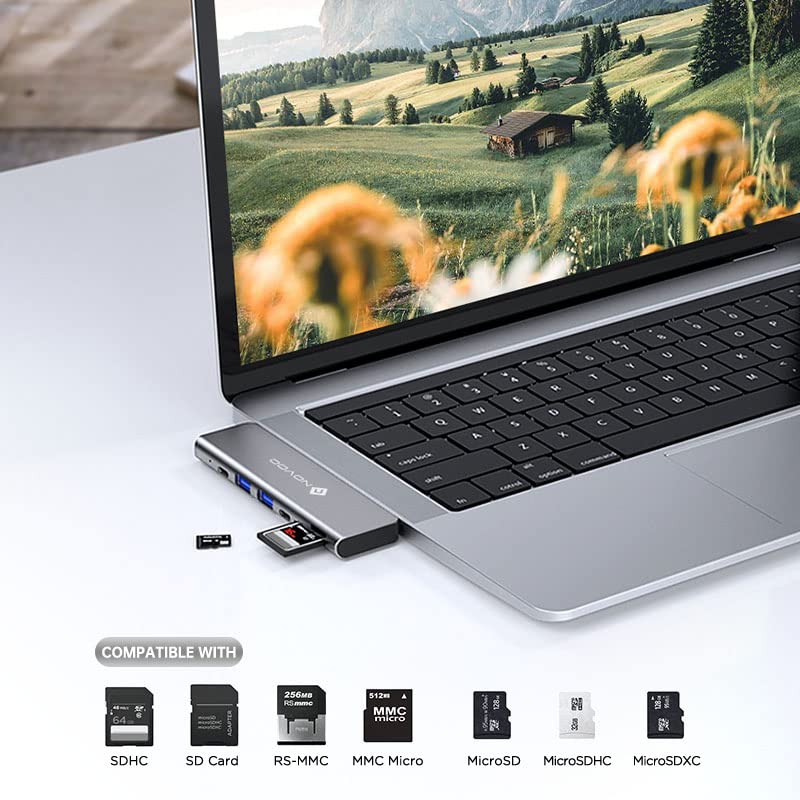 SD/microSD card reader, and an HDMI port—all from a compact and lightweight hub
