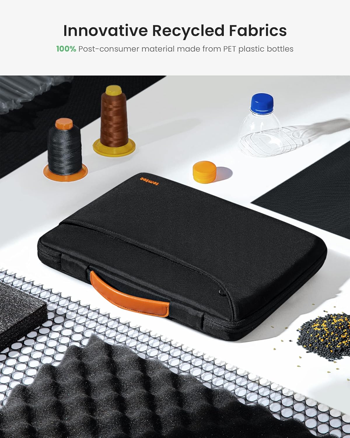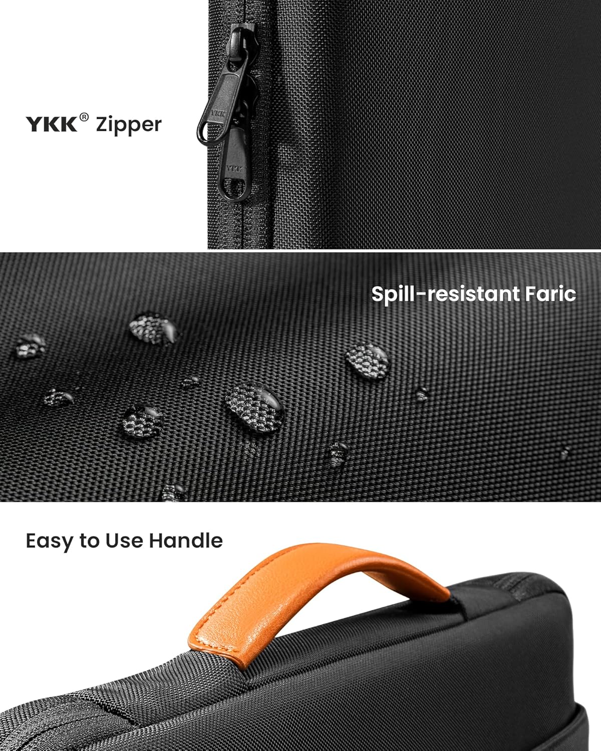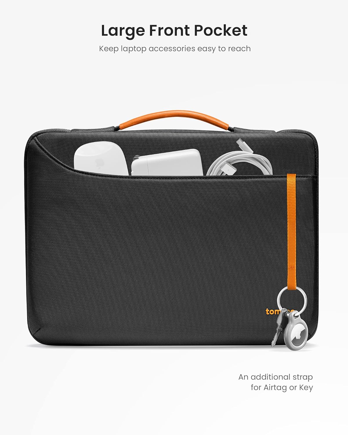 Tomtoc Corner Armor Patent Design protective Corner Armor patent design at the bottom of the case and 360° protective soft padding around inside protect your laptop from bumps in accident, just like the Car Airbag. Except the main compartment for your laptop, this case also features a second large zipper compartment for additional storage such as charger, power adapters, cables, mouse and other accessories; it also fits 10.9-inch iPad Air 4 or 11-inch iPad Pro, etc. Specially designed secure belt with Velcro inside the 180° opening main compartment protect your laptop from sudden drop. Ultra-thick protective cushioning interior ensures your laptop from bumps, dents, scratches and spills at all times.