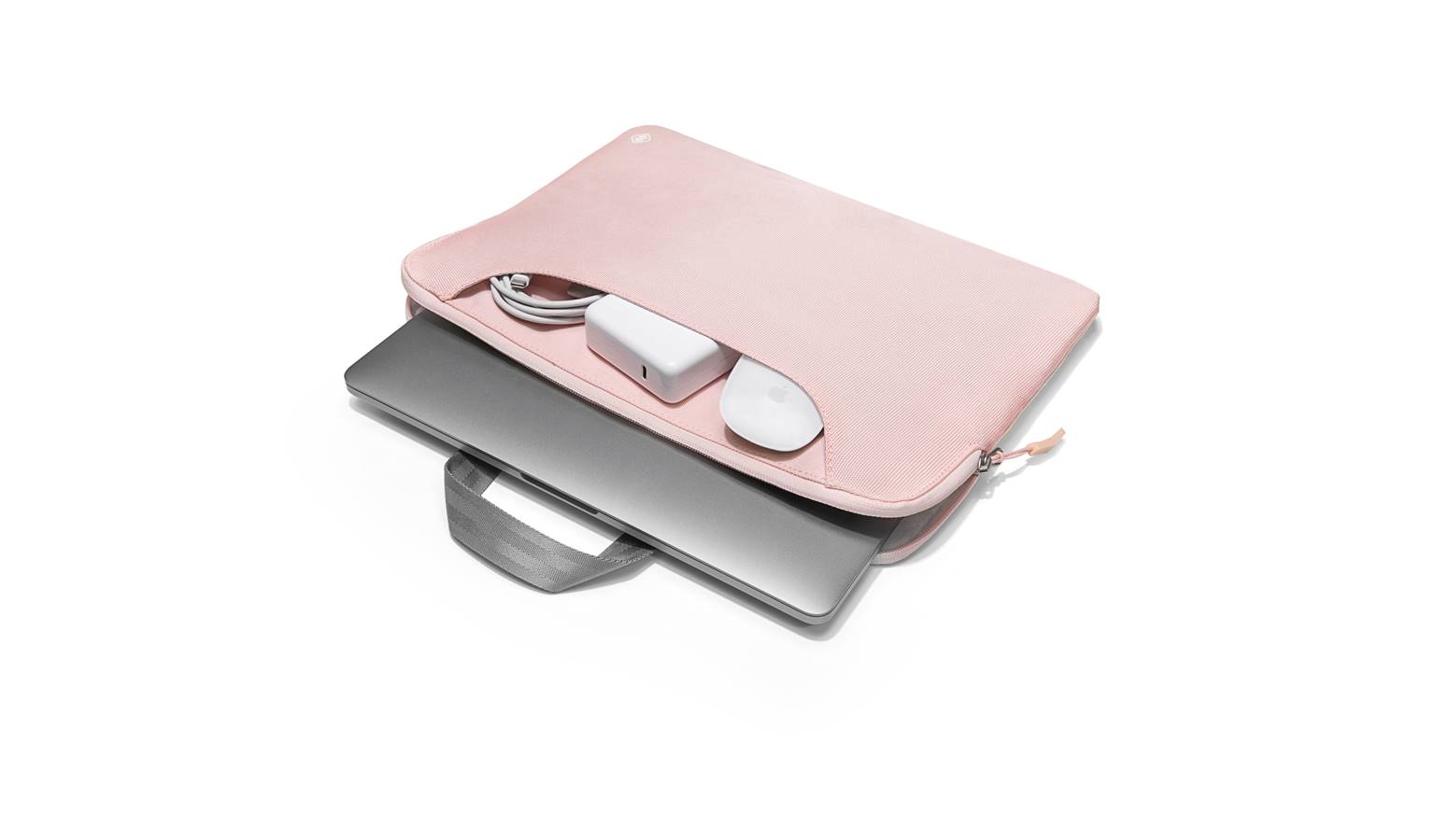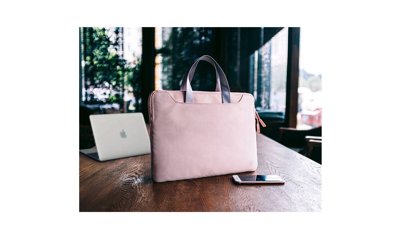 Compact and lightweight, this minimal briefcase comes with smooth handles, which enable you to carry your laptop & other essentials at ease. The handles can also be tucked away in the pockets to use the product as a sleeve that can easily slide into your briefcase, backpack, or luggage. It has one main compartment for your laptop and two side compartments for a power adapter, mouse, books or other small essentials.